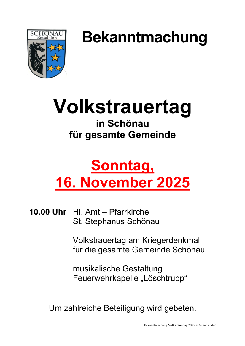 Volkstrauertag am Sonntag, den 16.11.2025