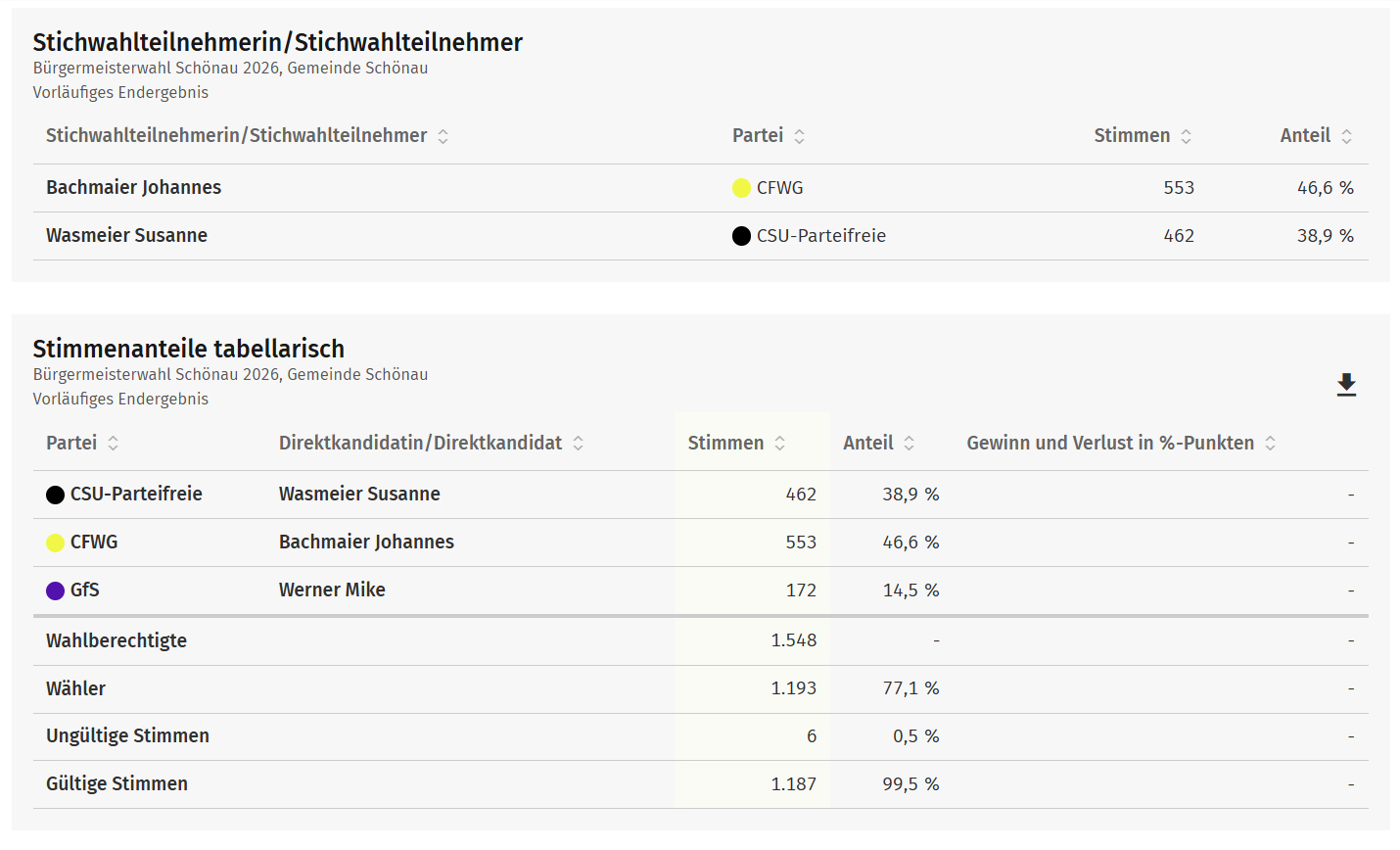 Vorläufige Ergebnisse 2026 Bürgermeister