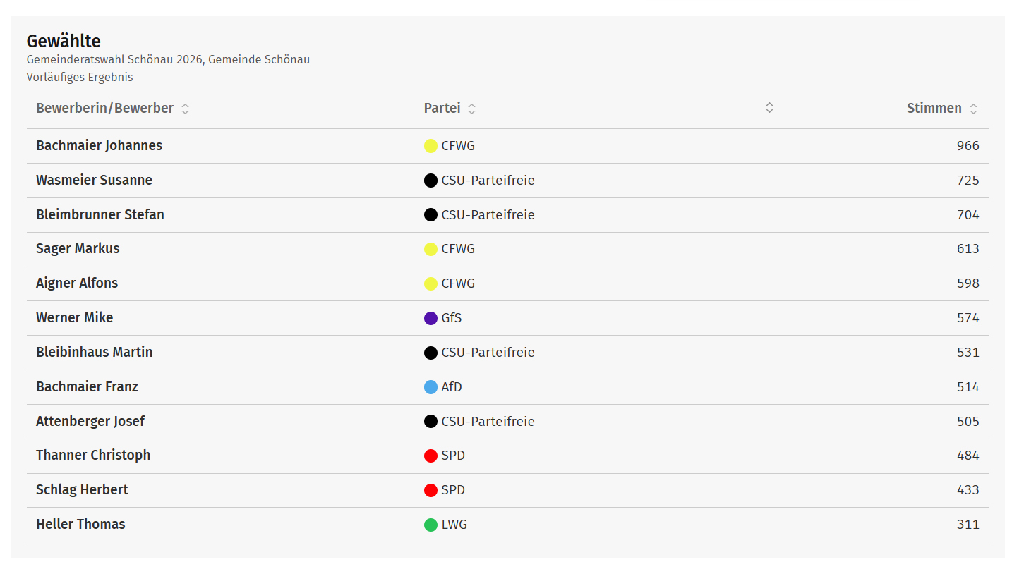 Vorläufige Ergebnisse 2026 Gemeinderat